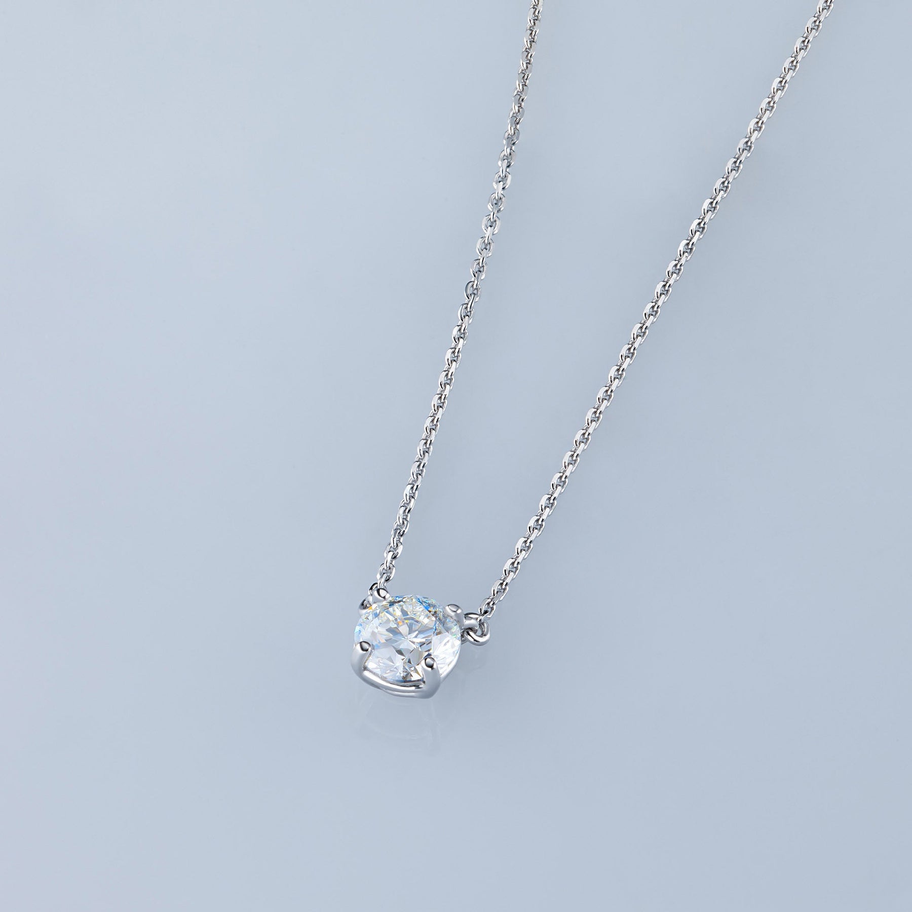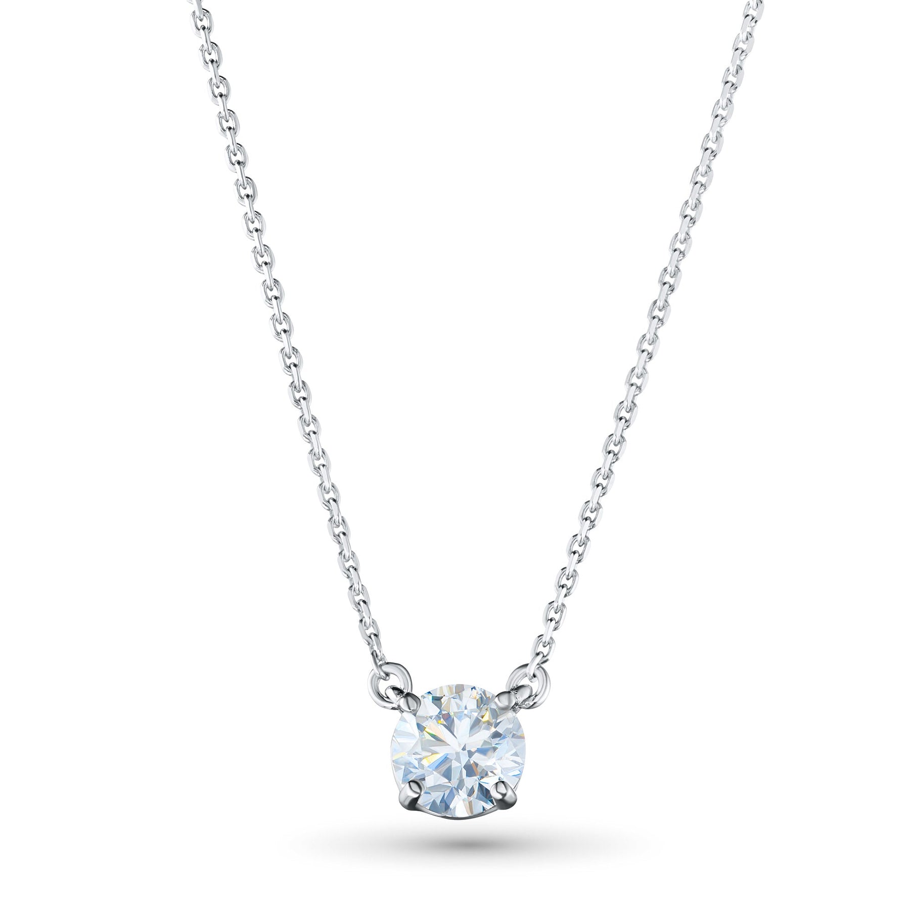 14K White Gold Necklace with 1 Round-Cut Lab-Created Diamond 0.4 CT.TW
